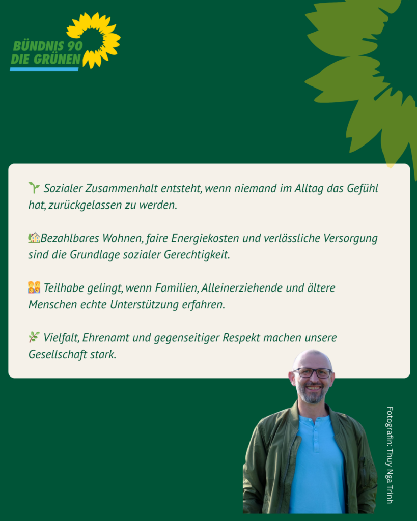 Sozialer Zusammenhalt bedeutet für ihn auch, soziale Spaltung aktiv zu verhindern. Unterschiede zwischen Stadt und Land, zwischen Arm und Reich oder zwischen Generationen dürfen nicht weiter vertieft werden. Gleichwertige Lebensverhältnisse sind dafür ein zentraler Maßstab.